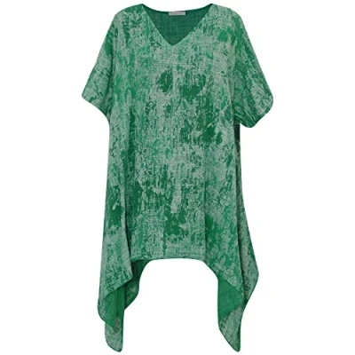Women Italian Top Ladies Tie Dye Print Summer Casual Wear Tunic Short Sleeves Shirts Size 14 22 UK (One fit for UK, Emerald)