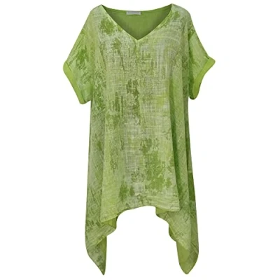 Women Italian Top Ladies Tie Dye Print Summer Casual Wear Tunic Short Sleeves Shirts Size 14 22 UK (One fit for UK, Lime Green)
