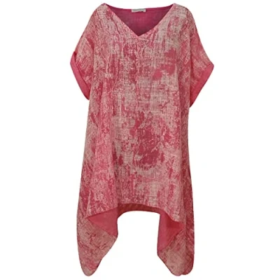 Women Italian Top Ladies Tie Dye Print Summer Casual Wear Tunic Short Sleeves Shirts Size 14 22 UK (One fit for UK, Pink)