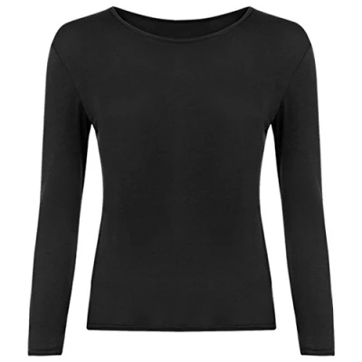 Women Long Sleeve T Shirt Top Basic Casual Plain Stretch Vest Body Blouse Tee Layering, S/M 8 10, Black
