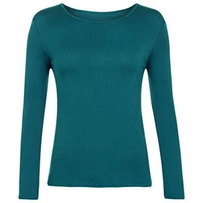 Women Long Sleeve T Shirt Top Basic Casual Plain Stretch Vest Body Blouse Tee Layering, S/M 8 10, Teal
