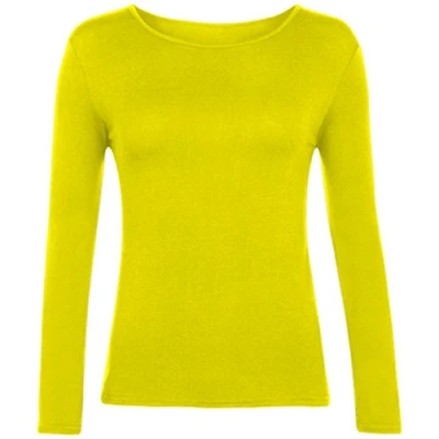 Women Long Sleeve T Shirt Top Basic Casual Plain Stretch Vest Body Blouse Tee Layering, S/M 8 10, Yellow