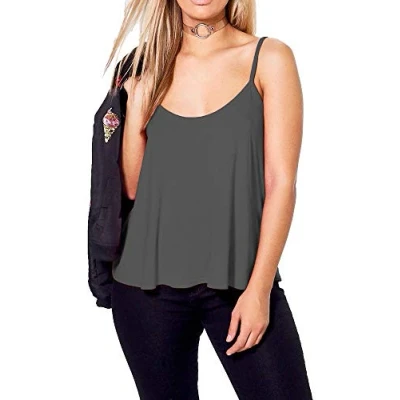 Women New Camisole Cami Strappy Swing Vest Plain Flared Sleeveless Mini Dress Tank Top Charcoal UK 16 18