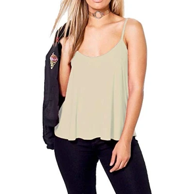 Women New Camisole Cami Strappy Swing Vest Plain Flared Sleeveless Mini Dress Tank Top Stone UK 20 22
