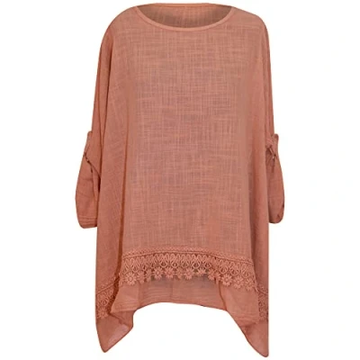 Women Plain Lace Top Ladies Italian Trendy Casual Wear Button Up Sleeves Shirts Size 12 20 UK (One fit for UK, Camel)