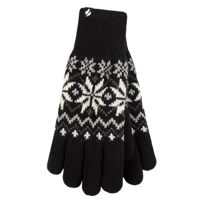 Women's 1 Pack SOCKSHOP Heat Holders Avens Patterned Gloves Black M/L