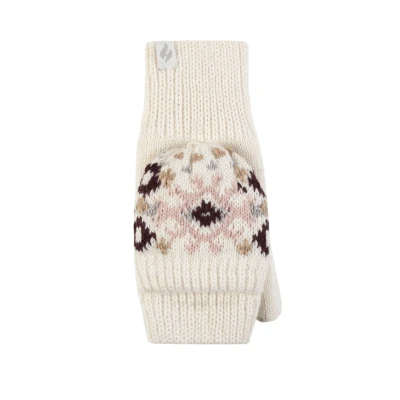 Women's 1 Pack SOCKSHOP Heat Holders Heather Patterned Converter Mittens Cream One Size