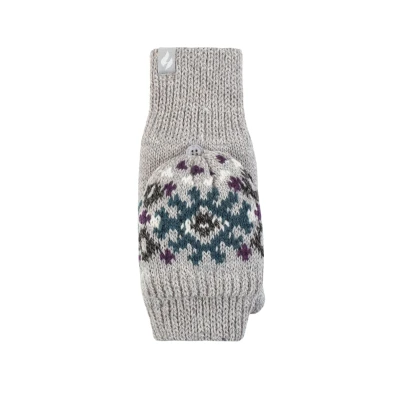 Women's 1 Pack SOCKSHOP Heat Holders Heather Patterned Converter Mittens Light Grey One Size