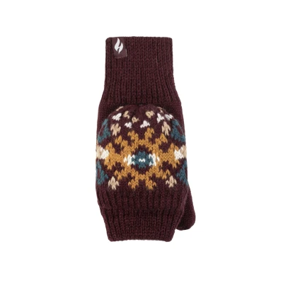 Women's 1 Pack SOCKSHOP Heat Holders Heather Patterned Converter Mittens Wine One Size