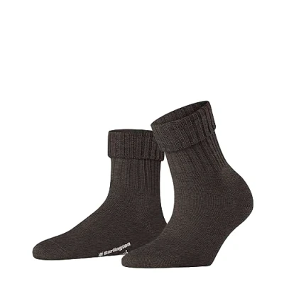 Women's 1 Pair Burlington Plymouth Virgin Wool Turn Over Top Socks Brown 3.5 7 Ladies