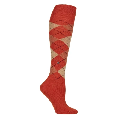 Women's 1 Pair Burlington Whitby Extra Soft Argyle Knee High Socks Orange 3.5 7