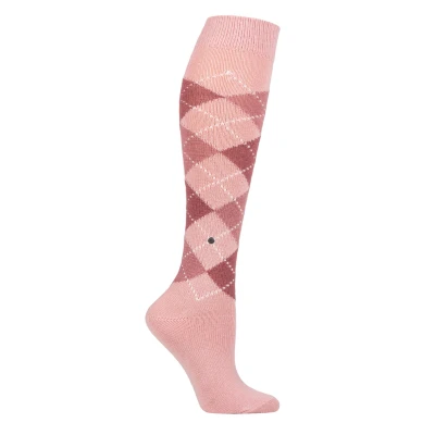 Women's 1 Pair Burlington Whitby Extra Soft Argyle Knee High Socks Pink