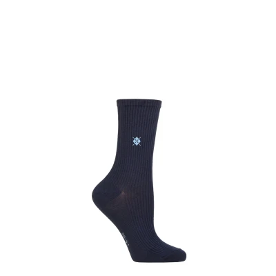 Women's 1 Pair Burlington York Organic Cotton Ribbed Socks Navy 3.5 7 Ladies