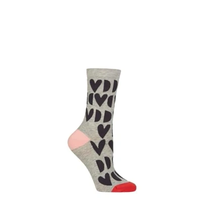 Naturally soft at heart, made using a smooth bamboo and cotton fibre blend, these Caroline Gardner Patterned Bamboo Socks prominently feature her signature hand drawn heart symbol for a wonderfully upbeat, feel-good look. Mixed, contrast-coloured toes and heels give these women’s crew length socks even more impact. With flat, smooth toe seams for extra comfort, plus the softness and breathability that this bamboo and cotton-based blend provides, these cool-feeling, fine gauge knitted socks are kind to feet and skin.