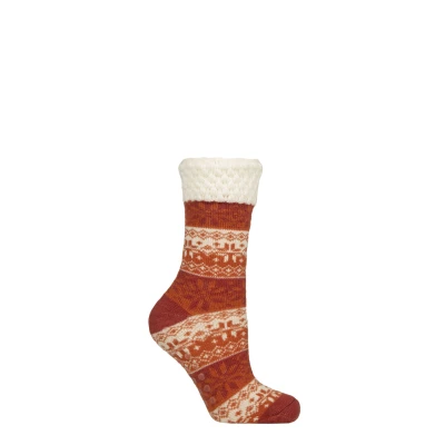 Women's 1 Pair Elle Feather Lined Fairisle Home Socks Wild Poppy 4 8