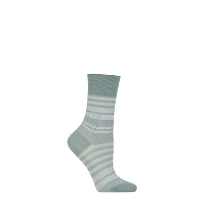 Lovely to look at, gentle on the legs and feet, these Falke Sunset Stripe Sensitive Lyocell Socks are light — and delightful — in a captivating two-tone design with bands of pinstripes that escalate in amount as they descend the legs. Extra-lightweight in an airy, textured mesh weave and a fine yarn, these women's’ crew length socks are knitted using cool, soft Lyocell, which is a naturally-derived (from eucalyptus trees) and sustainable fibre with a pleasingly smooth and silky feel. For added comfort, the socks have plain-knit toes and heels, smooth toe seams that don’t press or rub the toes during wear, and single layer, gentle grip pressure-free comfort cuffs that prevent uncomfortable constriction, making them ideal for anyone with pressure-sensitive legs, and for diabetics too.