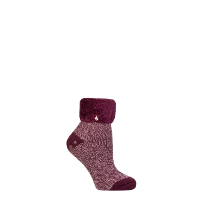 Women's 1 Pair Heat Holders Lounge Feather Turn Over Cuff Socks Ara Cabernet 4 8