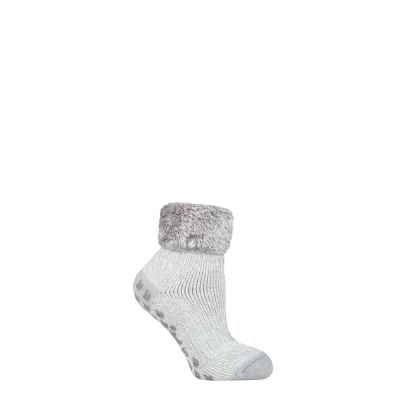 Women's 1 Pair Heat Holders Lounge Feather Turn Over Cuff Socks Queenstown Plain Silver Grey 4 8 Ladies
