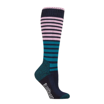 Women's 1 Pair SOCKSHOP BlueGuard RHS Royal Horticultural Society Cotton Gardening Long Boot Socks Stripe Navy 4 8