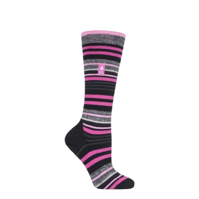 Women's 1 Pair SOCKSHOP Heat Holders 1.0 TOG Apres Ski Ultra Lite Socks Black Stripe 4 8 Ladies