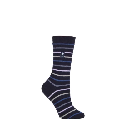 Women's 1 Pair SOCKSHOP Heat Holders 1.0 TOG Ultralite Striped, Argyle & Patterned Socks Riga Stripe Navy 4 8 Ladies