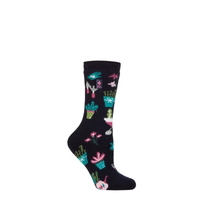 Women's 1 Pair SOCKSHOP Heat Holders 1.6 TOG Lite Hobby Socks Green Fingers Navy 4 8
