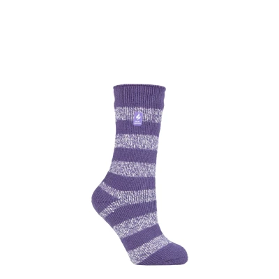 Women's 1 Pair SOCKSHOP Heat Holders 2.3 TOG Patterned Thermal Socks Tuscany Chunky Stripe Mulberry Purple / White 4 8 Ladies