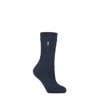 Women's 1 Pair SOCKSHOP Heat Holders 2.9 TOG Merino Wool Socks Navy Teal Twist 4 8