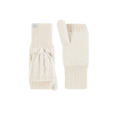 Women's 1 Pair SOCKSHOP Heat Holders Ash Cable Knit Converter Mittens Cream One Size