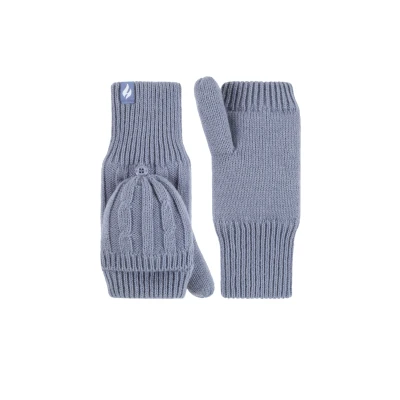 Women's 1 Pair SOCKSHOP Heat Holders Ash Cable Knit Converter Mittens Dusky Blue One Size