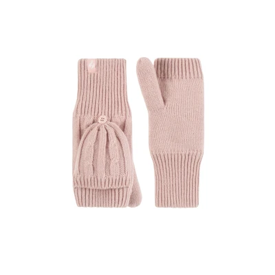 Women's 1 Pair SOCKSHOP Heat Holders Ash Cable Knit Converter Mittens Dusky Pink One Size