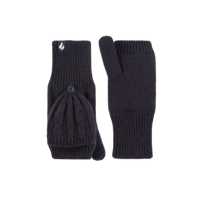 Women's 1 Pair SOCKSHOP Heat Holders Ash Cable Knit Converter Mittens Navy One Size