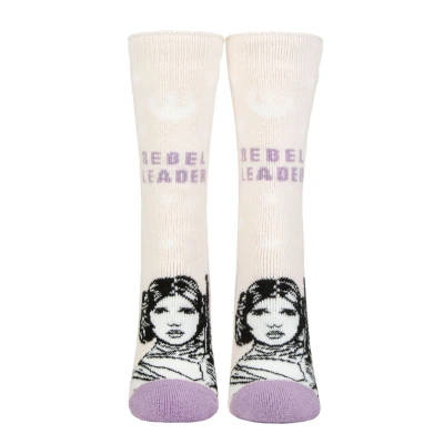Help me SOCKSHOP, you’re my only hope… of warm feet! Well, how can we refuse a princess? These SOCKSHOP Heat Holders Disney Star Wars 1.6 TOG Lite Princess Leia Thermal Socks are the perfect cold weather companions for all aspiring Rebel Leaders — after all, it says so right there on the legs! No-one wants to look like a stuck up, half-witted, scruffy-looking Nerf herder, so these Women's fit socks have a restrained colour palette, pretty in oyster pink and lavender, with a black and white image of Princess Leia Organa of Alderaan, and a subtle Rebel Alliance logo just below the gentle, non-binding tops. These medium thickness socks easily fit into everyday shoes or boots, but deliver warmth to an official TOG rating of 1.6. Insulating them is Heat Holders’ advanced Japanese designed thermal yarn, knitted with terry looped cushioning inside that has been intensely brushed into a super-soft cloud of heat-holding fluffy fibres. Heat Holders in partnership with Scleroderma & Raynaud's UK. SRUK is the only UK Charity dedicated to improving the lives of people with Scleroderma and Raynaud's phenomenon.