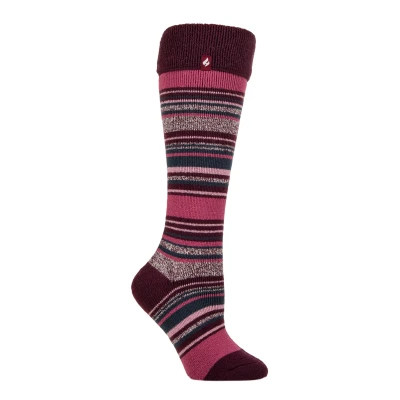 Women's 1 Pair SOCKSHOP Heat Holders Equestrian Collection 1.6 TOG Lite Thermal Wellington Boot Socks Daphne Stripe Cabernet 4 8