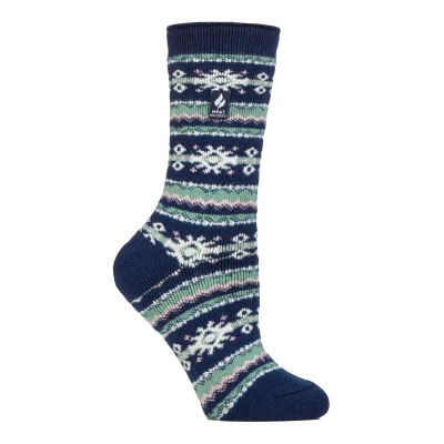 Women's 1 Pair SOCKSHOP Heat Holders Nordic Soul Warming Thermal Socks Indigo/Rose Blush 4 8