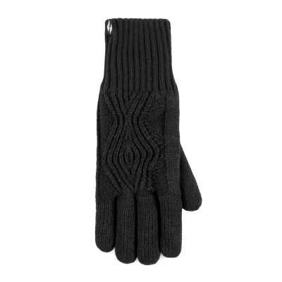 Women's 1 Pair SOCKSHOP Heat Holders Tampere Centre Cable Gloves Black M/L