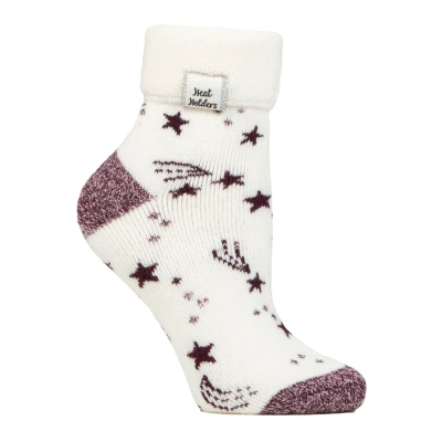 Women's 1 Pair SOCKSHOP Heat Holders Turn Over Cuff Sleep Lite Socks Ivory / Cabernet Stars 4 8