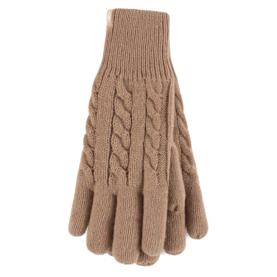 Women's 1 Pair SOCKSHOP Heat Holders Willow Cable Gloves Beige S/M