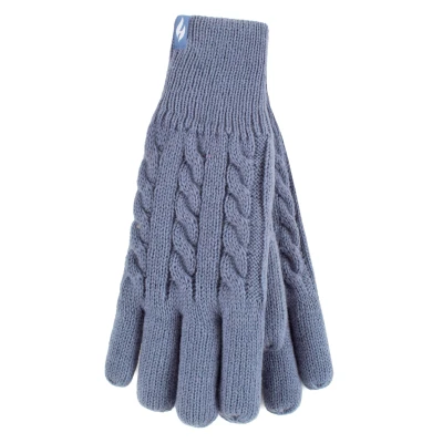 Women's 1 Pair SOCKSHOP Heat Holders Willow Cable Gloves Dusky Blue S/M