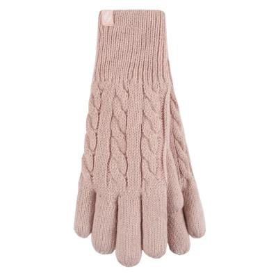 Women's 1 Pair SOCKSHOP Heat Holders Willow Cable Gloves Dusky Pink S/M