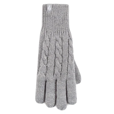 Women's 1 Pair SOCKSHOP Heat Holders Willow Cable Gloves Light Grey S/M