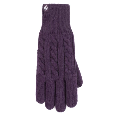 Women's 1 Pair SOCKSHOP Heat Holders Willow Cable Gloves Purple S/M
