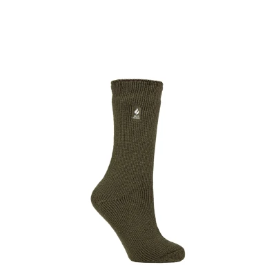 Women's 1 Pair SOCKSHOP Original Heat Holders 2.3 TOG Thermal Socks Olive 4 8