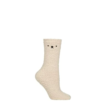 Women's 1 Pair SOCKSHOP Teddy Bear Cosy Gift Boxed Socks Stone 4 8