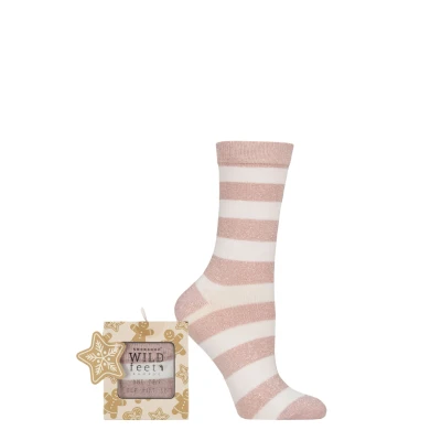 Women's 1 Pair SOCKSHOP Wildfeet Bamboo Christmas Gift Boxed Socks Pink / White Stripe 4 8
