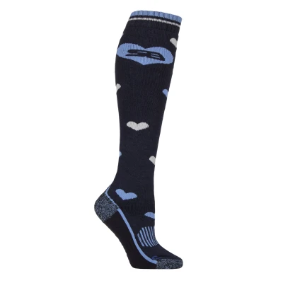 Women's 1 Pair Storm Bloc BlueGuard Patterdale Plain Patterned and Argyle Cotton Long Leg Equestrian Socks Hearts Navy / Blue 4 8