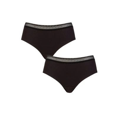 Women's 2 Pack Sloggi GO Ribbed Hipster Briefs Black Extra Small