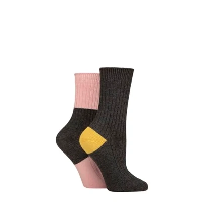 Women's 2 Pair Caroline Gardner Bamboo Ribbed Light Weight Boot Socks Charcoal Pink / Lime 4 8