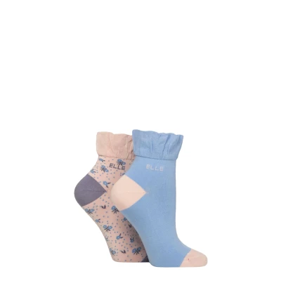Women's 2 Pair Elle Bamboo Anklet Socks Parisian Rose Floral 4 8