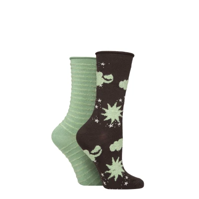 Women's 2 Pair Elle Bamboo Feather Striped Socks Forager 4 8
